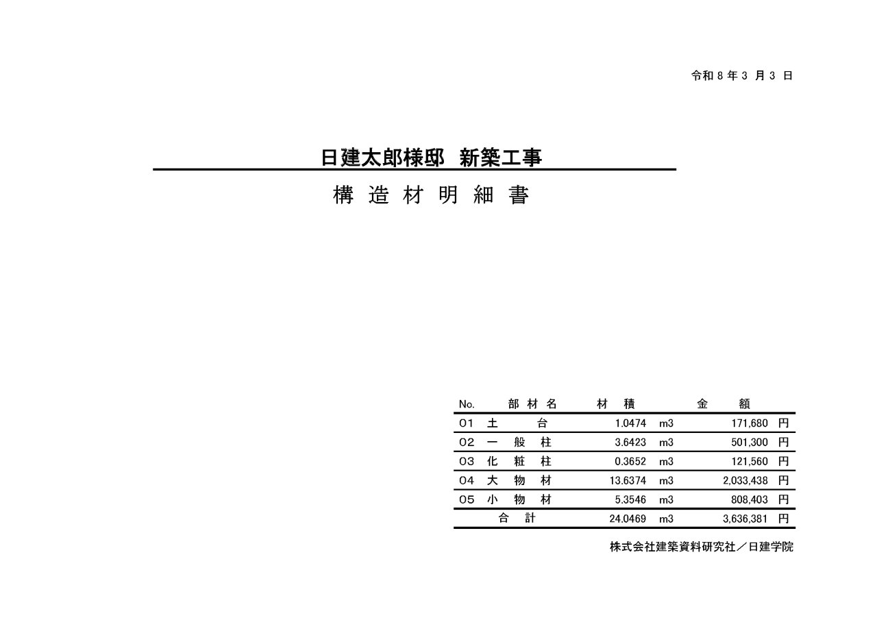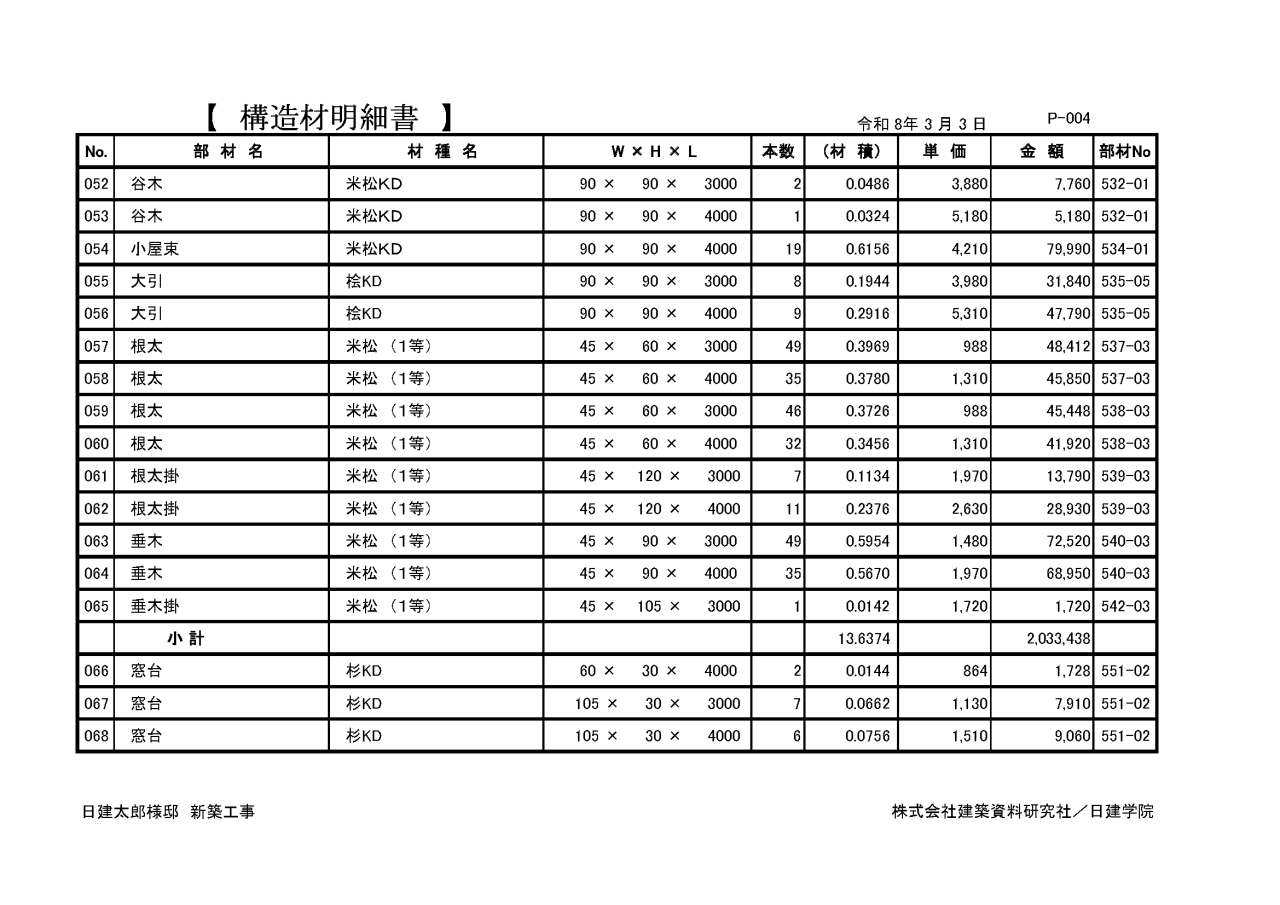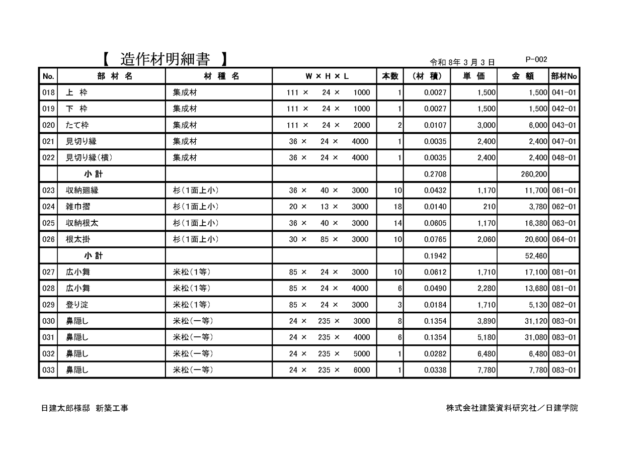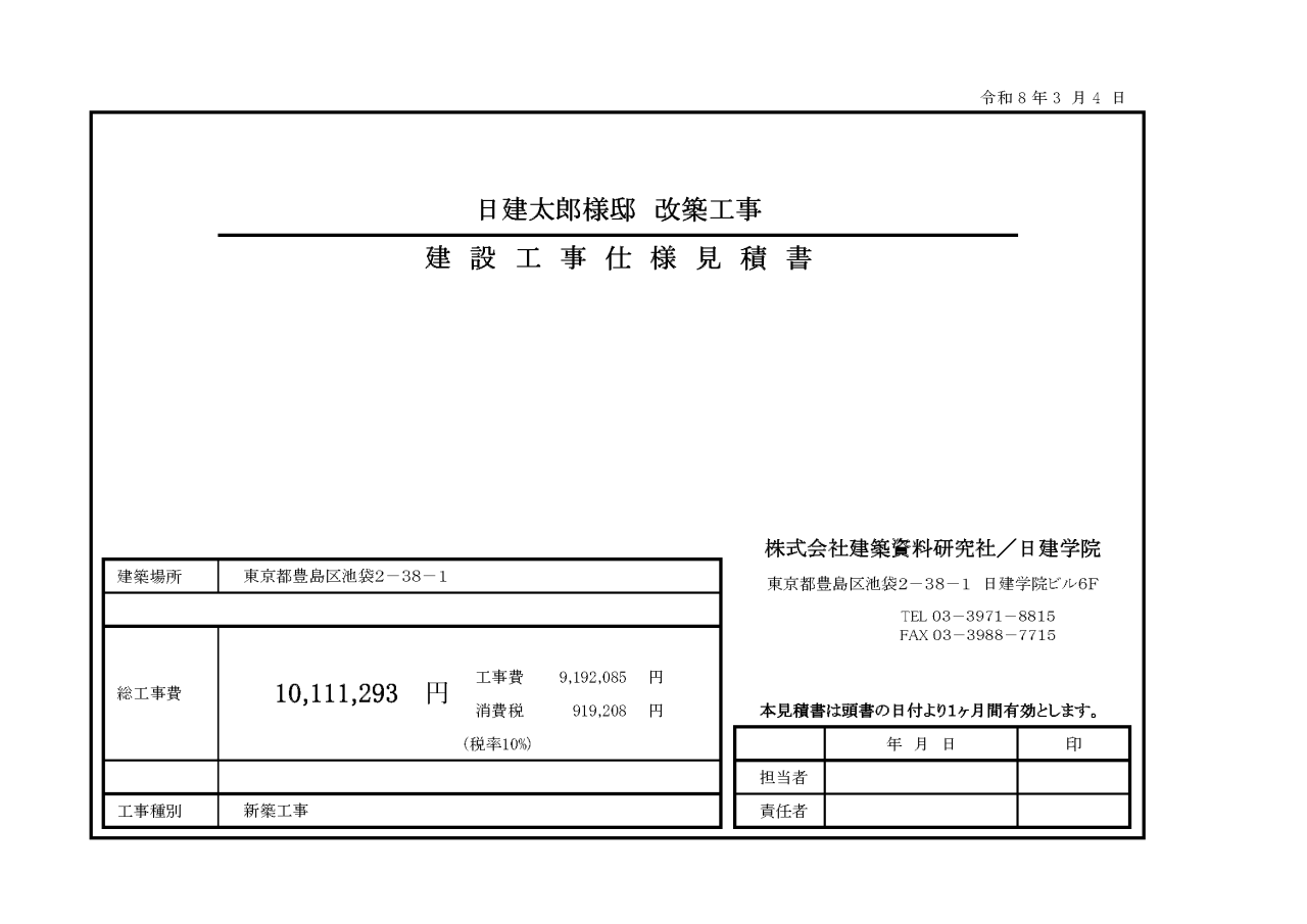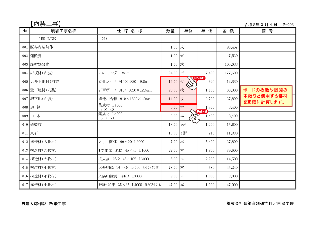 リフォーム積算プログラムの帳票サンプルをご紹介します